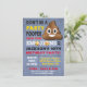 Super niedlich kack emoji lädt Sie zu einer Geburtstagsparty ein! Handgezeichnete Iogi mit lustigen Schriftart auf einem Denim Hintergrund. Sei also kein Party-Pooper und nimm diese lustige Einladung auf! Ideal für einen Jungen oder ein Mädchen.