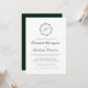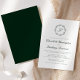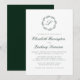 Dieses elegante Hochzeitsinspektionsdesign zeichnet sich durch ein tiefgrünes, waldgrünes Schriftzeichen aus, das zunächst durch einen Botanischen Kranz auf weißem Hintergrund umgeben wird. Die Namen erscheinen im Skript "Waldgrün", mit der Erholung des Textes im klassischen Serif-Schriftart. Die Rückseite der Karte ist massiv grün.