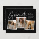 Ein Budget Script Foto Collage Abschluss Einladung mit handgeschriebenem Schriftart und 3 Fotos auf der Vorderseite mit Namen und Abschluss Details. Die Rückseite hat 2 Fotos und Party Details. Klicken Sie auf die Schaltfläche Bearbeiten, um dieses Design anzupassen.