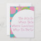 Der hellrosa Hintergrund ist mit einem trendigen Muster von Kreisen, Punkten und Ringen in verschiedenen lebhaften Farben, darunter Blau, Grün, lila und Gelb, geschmückt.