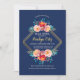 Eine wunderschöne, marineblaue, Aquarelleinladung mit einem polygonalen Goldrahmen und Haufen rosa und roter Blume und Blattwerk. (<a href='https://www.freepik.com/free-vector/watercolor-floral-frame-with-golden-polygonal-lines_2628011.htm'>Designed by Freepik</a>). <br/>()<br/>Die Karte ist leicht mit Ihrer Formulierung, Schriftart und Schriftart Farbe anzupassen.<br/>() Nicht genau das, was Sie suchen? Alle unsere Produkte können auf Ihre Bedürfnisse zugeschnitten werden, ohne Aufpreis.<br/>() Kontaktieren Sie uns einfach unter askcottonlamb@gmail.com.<br/>() Koordinierung der Produkte verfügbar: frag uns einfach!