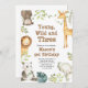 Tier-Thema Geburtstag Einladungskarte mit wilden Tieren wie Giraffe, Affe, Elefantenpanda und Löwe.