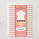 Eine reizende Einladung mit einem lächelnden kleinen Koch mit einem Pfirsich und weißem Gingham Muster Hintergrund. (RP). <br/>()<br/>Die Karte lässt sich einfach mit Ihrem Wortlaut, Schriftart, Schriftart und der Auswahl von sechs Papiertypen anpassen.<br/>() Nicht genau das, was Sie suchen? Alle unsere Produkte können auf Ihre Bedürfnisse zugeschnitten werden, ohne Aufpreis.<br/>() Kontaktieren Sie uns einfach unter askpixieprints@aol.com.<br/>() Koordinierung der verfügbaren Produkte: