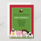 Personalisieren Sie die Einladung dieses Kindes Farm Tiere Geburtstagsparty. Es gibt eine rote Scheune mit Hühnern, Ziegen, Schweinen und einer niedlichen Kuh. Einige Elemente © BabyStarDesign