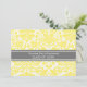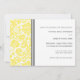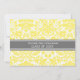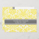 Graduation Party Einladung individuelle Karte in eleganten und raffinierten hellen Zitronengelb, grau und weiß klassischen Vintagen Blumenstaub Muster. Passen Sie diese Akademie-Ankündigungskarte an, indem Sie das Jahr Ihres Abschlusses und Ihre Graduiertenparty-Details hinzufügen.