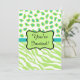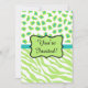 Passen Sie diese raffinierte Einladung für Ihre besondere Veranstaltung, Party oder Ansammlung, Mittag-, Abendessen, Ruhestand Party, Treffen, Mädchen Nacht out oder andere Feiern an. Die Zebrastreifen in Kalkgrün und Weiß sowie Leoparden- oder Geparkskins sorgen für ein trendiges und modernes Design. Ein in Schwarz umrissenes Linoleum auf einer türkisfarbenen aquamarinen blauen Bar und schafft einen Personalisierungsbereich mit dem Namen des Geburtstagsmädchens und "You're Invited" Wörtern, die sich an andere Wörter anpassen lassen. Die Rückseite der Einladung enthält Felder für alle Ihre Informationen für Ihr Party oder Ihre Veranstaltung. Sie können Felder nach Bedarf ganz einfach ändern und löschen. Die Farben sind grün, weiß, türkisblau und aquamarin blau und schwarz. Wilde Tierfelle für Grafikdesign sind ein Trend für Kunst und Design und sind von Mode bis Wohngestaltung sehr beliebt. Diese ausgeklügelte Zebra- und Leopardruckkollektion ist eine von mehreren Farbkombinationen, die für Ihre Auswahl an Einladungen und Koordinaten mit anderen Produkten für ein stilvolles Party zur Verfügung stehen.