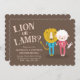 FRONT: Ein bezaubernder Löwe und Lamm, beide tragen ihre gemusterten Schlafanzüge. Das Lamm hält an einer sonnigen Puppe fest. Der Text "Lion - oder - Lamm?" ist bereits auf der Einladung enthalten. Personalisieren Sie einfach die Erholung der Informationen mit Ihren Namen(en) und Party-Details. BACK: Dasselbe Kreuz-Duo - nur kleiner. Sie haben die Möglichkeit, auf der Rückseite der Einladung eine Textzeile hinzuzufügen.