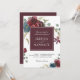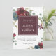 Artistisch elegante Aquarellblüten in tiefroter Marsala, Bordeaux und Marine mit Eukalyptuszweigen und hinterem Grün bilden den Rahmen dieser unverwechselbaren Hochzeitseinladung. Ein passender Rahmen aus Marsala fügt den Namen der Braut und des Bräutigams einen schönen Hintergrund hinzu. Personalisieren Sie die leicht zu bedienende Textvorlage mit Ihren Hochzeitsdetails.
