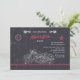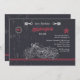 Eine Tafel, die Einladung eines Mannes mit roten Akzenten. Es enthält das Wort "Motorrad", "No1", und einen roten Stern, zusammen mit einem Motorrad-Zugzug und Reißverschluss zieht, um den Namen zu bilden. (RP)