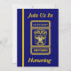 Diese blaue und goldene Einladung ist auf der Vorderseite mit dem Logo eines Polizeileutnants für das Abzeichen dekoriert. Sie können diese Karte anpassen, indem Sie Ihre Daten in die dafür vorgesehenen Felder eingeben. Sie können auch das Abzeichen auf der Vorder- und Rückseite mit dem Namen der Ehrenfrau anpassen.