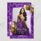 Erleben Sie Ihre Quinceañera-Feier mit unserer faszinierenden Lila und goldenen Einladung aus unserem Zazzle Shop. Die Vorderseite dieser Einladung ist mit einem glamourösen, lila Rahmen mit festlichen Ballons geschmückt und bietet einen visuell atemberaubenden Rahmen, in dem Sie mühelos Ihr eigenes Bild einfügen können. Auf der Rückseite der Einladung können Sie jedes Detail der Veranstaltung individuell gestalten und so Ihre Gäste mit allen wichtigen Informationen für diesen unvergesslichen Anlass auf dem Laufenden halten.