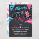 Räder oder Heelse. Spaß rosa oder blaues Geschlecht offenbaren Einladungen. Dunkler Chalkboard-Hintergrund und niedliche Abbildungen. Der gesamte Text unter Räder oder Heels ist auf Ihr Party zugeschnitten.