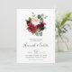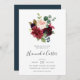 Elegante blumengeschmückte Hochzeitsfeiern mit einer Reihe von Aquarellfarben-Blume in bordeauxroter Marsala und Rosa mit blauen Knospen und grünem Eukalyptusblättern. Personalisieren Sie Ihre Hochzeitsdetails in einem schicken Mix aus Block-, Serif- und handgeschriebenen Kalligrafietschriften.