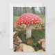 Eine Einladung, die Rot-Toadstool-Fliege agarischen Pilz zwischen den gelben Blätter und Wald als Hintergrund