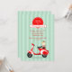 Ein zippiges Design für eine Geburtstagsfeier. Der gestreifte Hintergrund verfügt über einen roten Banner-Header und einen roten und weißen Roller mit einem Geburtstagskuppel. Der Kuchen kann an einen beliebigen Ort gezogen oder entfernt werden.Die Karte lässt sich leicht mit Ihrem Text, Schriftart, Schriftart, Papierform und der Auswahl von sechs Papiertypen anpassen.