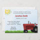 Red Traktor Geburtstagseinladung für Jungen oder Mädchen, die das Bauernleben Liebe. Im Design sitzt der Traktor im Gras mit der Sonne und dem blauen Himmel im Hintergrund.
