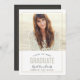 Chic minimalistische Foto Abschluss-Ankündigung und Party Einladung-Design mit Imitaten goldenen Folie Rahmen und elegante neutrale Farbschema. Personalisieren Sie es mit einem Foto und dem Namen Ihres Abschlusses, Schulname und Klassenjahr auf der Vorderseite und Ihre Abschlussfeier Details oder zusätzliche Fotos und Text auf der Rückseite. Klicken Sie auf Anpassen, um eine beliebige Hintergrundfarbe auszuwählen, die Schriftart und Farben zu ändern, mehr Fotos hinzuzufügen und ein einzigartiges Design für jeden Grad zu erstellen!