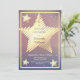 Eine Geburtstagseinladung mit goldenen, stilisierten Sternen. Der gesamte Text kann individuell angepasst werden. (Gold-Elemente sind nicht aus Folie)