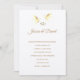 Diese Hochzeitseinladung wird in einem klassischen Layout auf weißem Hintergrund mit einer Papierauswahl von 110 lb Filzpapier gezeigt. Grafik von zwei goldfarbenen Doves mit zwei goldenen Farbringen oben. Text in goldener Farbe. Passen Sie dieses Element an, indem Sie den Beispieltext nehmen und stattdessen Ihre Informationen darin einfügen. Bild auf Lager.