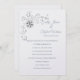 Diese Hochzeitseinladung wird in einem klassischen Layout auf einem weißen Hintergrund gezeigt, in einer Papierauswahl von Peal Shimmer. Wählen Sie Ihr Wunschpapier aus. Grafik der silberfarbenen Blumenmuster und des Weinmusters in der obersten verlassen Ecke . Coupels Namen oben rechts und der Text unter ihren Namen in einem weichen Dusty Blue. Passen Sie dieses Element an, indem Sie den Beispieltext nehmen und stattdessen Ihre Informationen darin einfügen. Bild auf Lager.