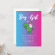 Einhorn Dinosaurier Geschlecht offenbaren Party Einladung. Niedliches und modernes Geschlecht enthüllt eine Party Einladung-Karte, die eine lustige Darstellung eines Einhorns auf einem Dinosaurier enthält. Alle Elemente der Einladung sind vollständig editierbar.