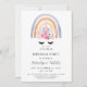 Ein zauberhaftes Boho-Stil Einhorn und Aquarell Regenbogen-Geburtstagseinladung mit Lavendel und Pfirsichfarben.