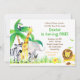Wasserfarbe Geburtstagseinladung mit Dschungeltieren / Zootieren für Jungen 1. oder 2. Geburtstag / Babydusche. Mit Elefanten, Löwen, Giraffen, Zebra.