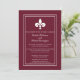 Genießen Sie die Hochzeitsfeier in der Roten Lilie, die für französisch inspirierte Hochzeitskunst konzipiert ist. Diese exquisite Einladung zeigt ein raffiniertes Lilie-Motiv, das durch einen ausgeklügelten Doppelzeilenrahmen gerahmt ist und die französische Ästhetik mit eleganter Schrift und moderner Typografie verbindet. Ideal für Braut und Bräutigam, die elegante Anordnung und das moderne Design machen Ihre Hochzeitsdetails mit zeitlosem Charme zu einem besonderen Highlight. Diese individuell gestaltbare Einladung ist ideal für Paare, die eine romantische, französisch inspirierte Feier verbringen möchten. Ideal für Paare, die eine französisch inspirierte Themenhochzeit veranstalten.