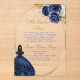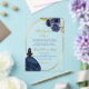 Plantilla editable de invitación para quinceañera con tema azul y flores azules.