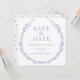 Dieses elegante und raffinierte Foto lädt zu einer Hochzeit in Boho ein und präsentiert ein elegantes rustikales botanisches Thema mit hellblauen Blume.