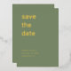 Einfache Sage Green Save the Date Foil Einladung, bitte personalisieren Sie die Vorderseite des Save the Date mit den Namen des Ehepaares, das Datum der Hochzeit und den Ort der Hochzeit (oder andere Formulierung Ihrer Wahl), mit der Online-Personalisierung Vorlage vor Bestellung. Dieses Save the Date Design zeichnet sich durch einen schönen, echten Metallic-Folientext auf der Vorderseite aus, in einem schlichten minimalistischen Design. Der Hintergrund für die Vorderseite der Karte ist sage grün; die Rückseite der Karte ist ebenfalls sage grün. Dieses Design ist schnell und einfach zu personalisieren und kann für eine Hochzeit oder andere geplante Feierlichkeiten wie Jubiläum, Geburtstag oder Wiedersehen genutzt werden.