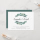 Die schicke botanische Hochzeitseinladung enthält üppige grüne Eukalyptus-Blätter, die in Aquarellfarbe illustriert sind und Ihre Namen in eleganter handgeschriebener Kalligraphie-Schrift abstecken. Personalisieren Sie Ihre Hochzeitsdetails ganz unten in einem verführerisch modernen Layout. Die Karten werden zu einem festen Waldgrün umgeschaltet.