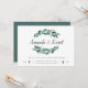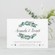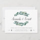 Die schicke botanische Hochzeitseinladung enthält üppige grüne Eukalyptus-Blätter, die in Aquarellfarbe illustriert sind und Ihre Namen in eleganter handgeschriebener Kalligraphie-Schrift abstecken. Personalisieren Sie Ihre Hochzeitsdetails ganz unten in einem einzigartigen modernen Layout. Die Karten werden zu einem festen Waldgrün umgeschaltet.