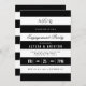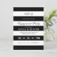 Eine kühne und dennoch moderne Schwarz-Weiß-Engagement-Einladung mit einem Spot für die Braut- und Bräutigam-Monogramme und relevanten Informationen zu Ihrem Event innerhalb der horizontalen Streifen.
