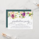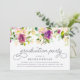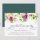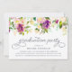 Moderne Aquarellblumen-Graduierungsparty lädt Sie ein, Rose und Pfannkuchen in violett lila, rot und grün mit dekorativen typografischen Akzenten und rauchblauen grauen Schriftzeichen zu entdecken. Personalisieren Sie Ihre gewünschte Graduierungspartei Einladung mit den Vorlagenfeldern.