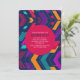 Ein buntes, abstraktes Muster geometrischer Formen vor marineblau-blauem Hintergrund erweckt diese eindrucksvolle Einladung. (<a href='http://www.freepik.com/free-vector/multicolor-geometric-background_1177518.htm'>Designed by Freepik</a>). <br/>()<br/>Die Karte lässt sich einfach mit Ihrem Text, Schriftart, Schriftart, Papierform und der Auswahl von sechs Papiertypen anpassen.<br/>() Nicht genau das, was Sie suchen? Alle unsere Produkte können auf Ihre Bedürfnisse zugeschnitten werden, ohne Aufpreis.<br/>() Kontaktieren Sie uns einfach unter heartfelthelper@gmail.com.<br/>() Koordinierung der Produkte verfügbar: frag uns einfach!