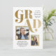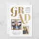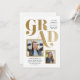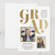 Eine Kombination aus Abschluss-Ankündigung und Einladung mit mehreren Foto-Aperturen, fett formatierter Typografie in einem modernen asymmetrischen Layout.