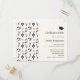 Abschluss Einladung Postcard mit musikalischem Themendesign. Ein Muster mit Treppenschnitt, Basskleber und anderen musikalischen Symbolen.