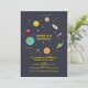 Diese Einladung ist "aus dieser Welt" niedlich und enthält Raumelemente von Raketen bis zu Planeten. Perfekt für beide Geschlechter.