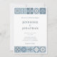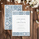Beginnen Sie Ihre Reise mit dieser Einladung mit aufwändigen Kacheln inspirierten Mustern in Blau- und Grautönen. Die zarten Details erinnern an das Gefühl der mediterranen Kacheln und bilden die Bühne für eine elegante und ruhige Feier