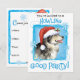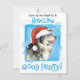 Lade all deine Freunde zu einer Howling Good Holiday Party dieses Jahr mit einer Einladung ein niedliches Alaskan Malemute mit einer Weihnachtsmannmütze inmitten eines Haufen Schneeflocken. Viel Glück beim Party!