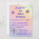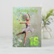 Eine schöne Ballerina Blume Fee Tanz auf einer Geburtstagsfeier Einladung. Die Ballerina trägt einen weißen Tutu und hat Spuren von Blume aus ihrem Haar. Sie tanzt durch eine Wiese voller Molkereien.