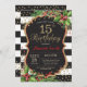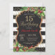 15. Geburtstag Einladung für Mädchen. Weihnachts Geburtstagsparty einladen. Weihnachts-Blumenkohl-Blume. Schwarzer, roter und goldener Glitzer. Schwarze und weiße Streifen. Printable Digital. Für weitere Anpassungen klicken Sie bitte auf die Schaltfläche "Anpassen" und verwenden Sie unser Designwerkzeug, um diese Vorlage zu ändern.
