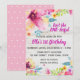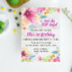 Eine elegante Einladung zum ersten Geburtstag mit hübschen Blumendetails