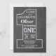 Einladung zum 1. Geburtstag Chalkboard. Einladung zur ersten Geburtstagsparty. Schwarze und weiße Worte. Hintergrund der Zwischenablage.