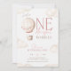 ONEderful World Geburtstag Einladung mit rosa und neutralen Tönen. Besuchen Sie den Paper Edit Events Shop für die passende Dekoration des Party zu diesem Thema!