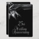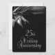 Einzigartige Einladung zum 25. Hochzeitsempfang / Party zum Schwarzen Hochzeitsjubiläum. Schwarze Vorder- und Rückseite mit silberfarbenem Text auf der Rückseite, der diesem kostenlosen Jubiläum einen eleganten Look verleiht, laden ein.