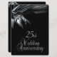 Einzigartige Einladung zum 25. Hochzeitsempfang / Party zum Schwarzen Hochzeitsjubiläum. Schwarze Vorder- und Rückseite mit silberfarbenem Text auf der Rückseite, der diesem kostenlosen Jubiläum einen eleganten Look verleiht, laden ein.