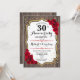 30. Hochzeit Jubiläum Einladung Rustikales elegantes Design dunkelbraunes Holzmuster, mit Imitaten Glitzer Gold und rote Rosen.