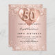 Für einen eleganten 50. Geburtstag. Eine Rose Gold Imitate metallisch aussehend Hintergrund. Mit Rose Gold dekoriert, glänzen rosa Imitate, Glitzern und Ballons. Personalisieren und fügen Sie einen Namen und Party-Details. Der Name ist mit einem handgeschriebenen Stil Skript geschrieben, Nummer 50 mit ballon Stil Schriftart.